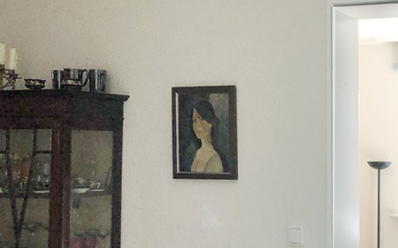 what's left: a self-portrait in blond, and a portrait of a woman with dark hair.
