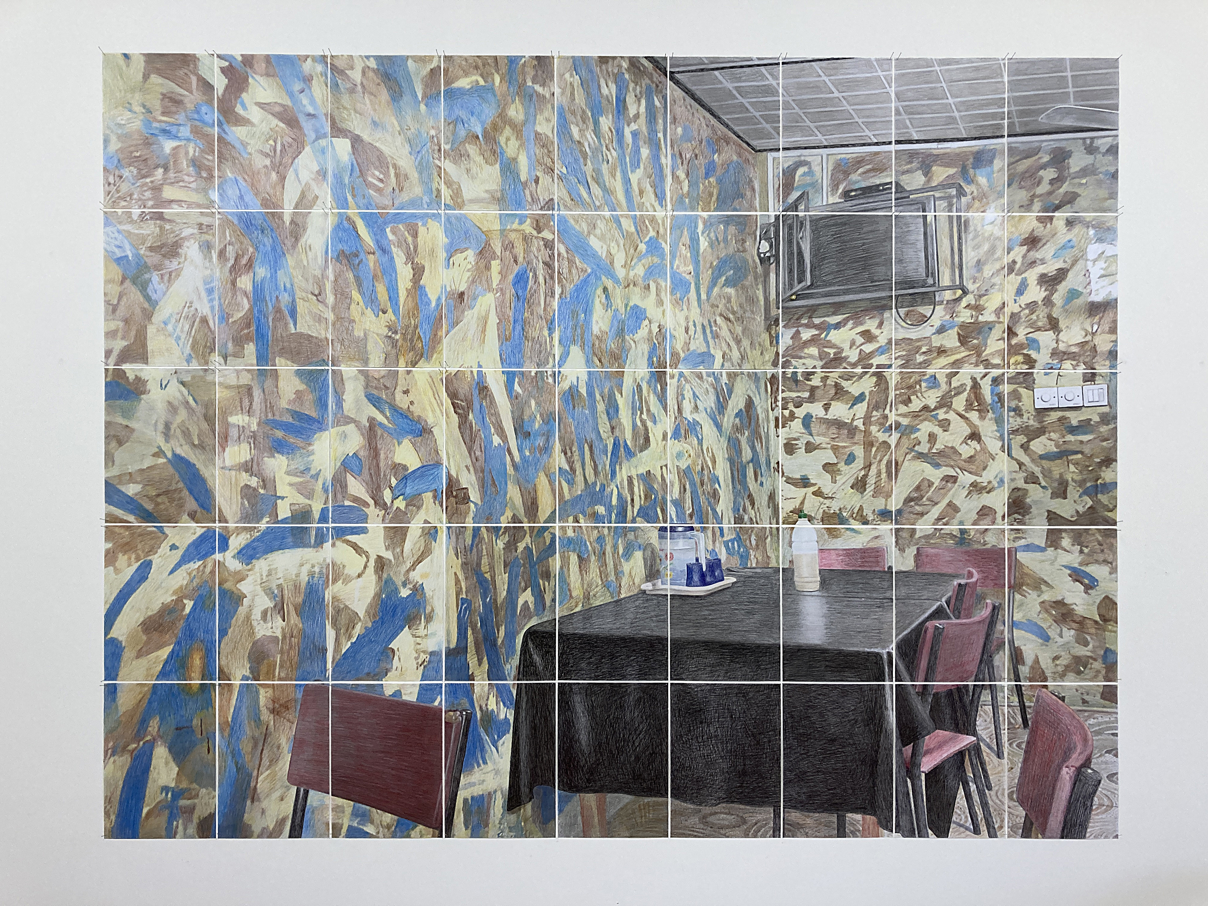 45 pieces, coloured pencil and pen on paper, 189 x 148 cm