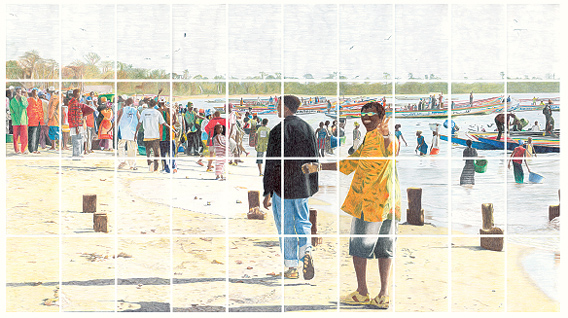 pen and coloured pencil on paper